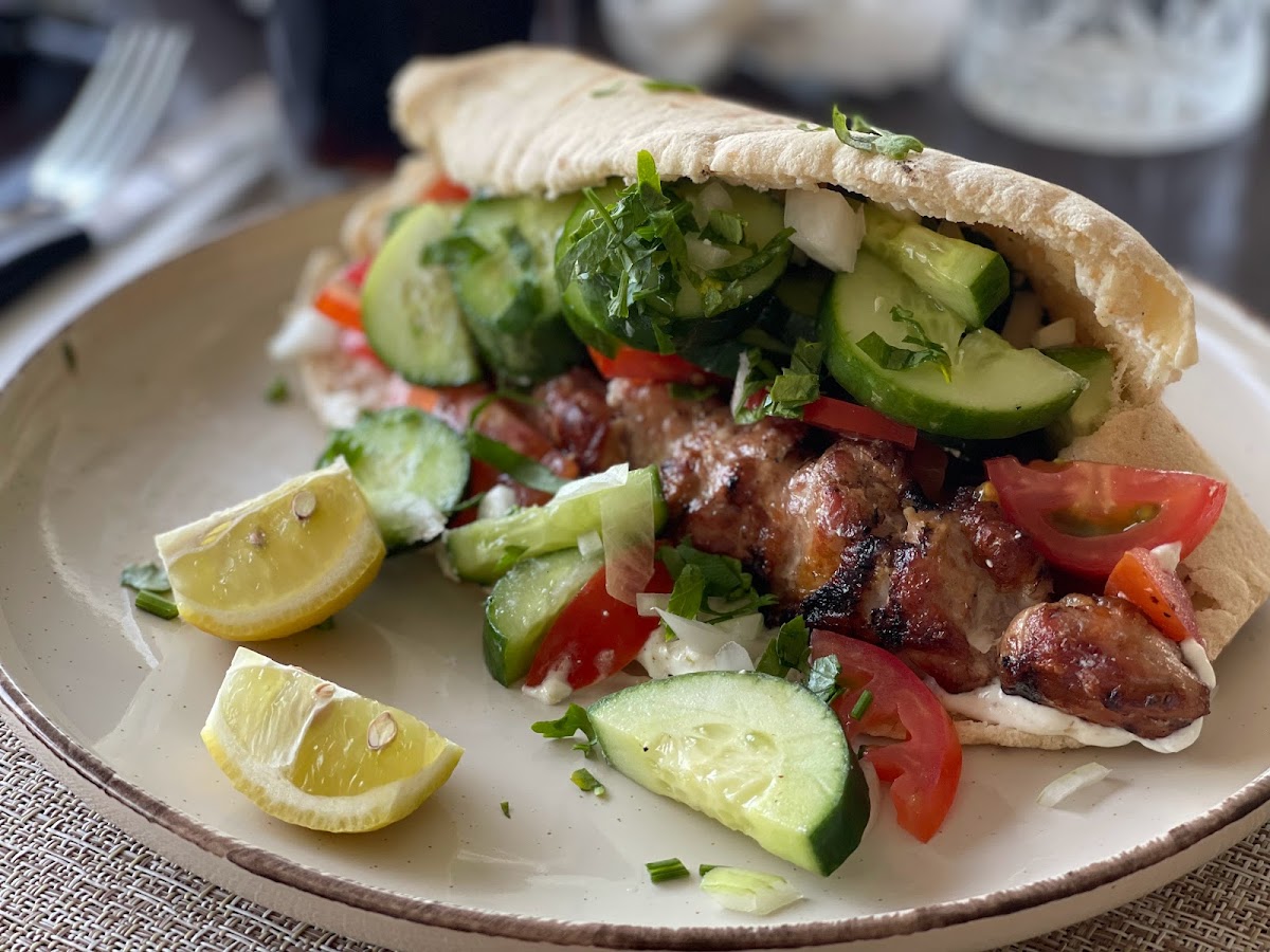 The kitchen’s soul shines through each thoughtfully prepared dish, showing genuine care for both tradition and variety. Plates arrive with the kind of warmth that suggests home cooking, from the softly spiced sheftalia tucked warmly into pita to the vibrant, fresh threads of a vegan platter that feel thoughtfully curated rather than routine. The mixed grill offers a convivial experience for sharing, inviting meals to become moments of connection. Even the simplest sides, like jacket potatoes enhanced with a dab of garlic butter, reveal an unexpected attention to comfort and flavor.